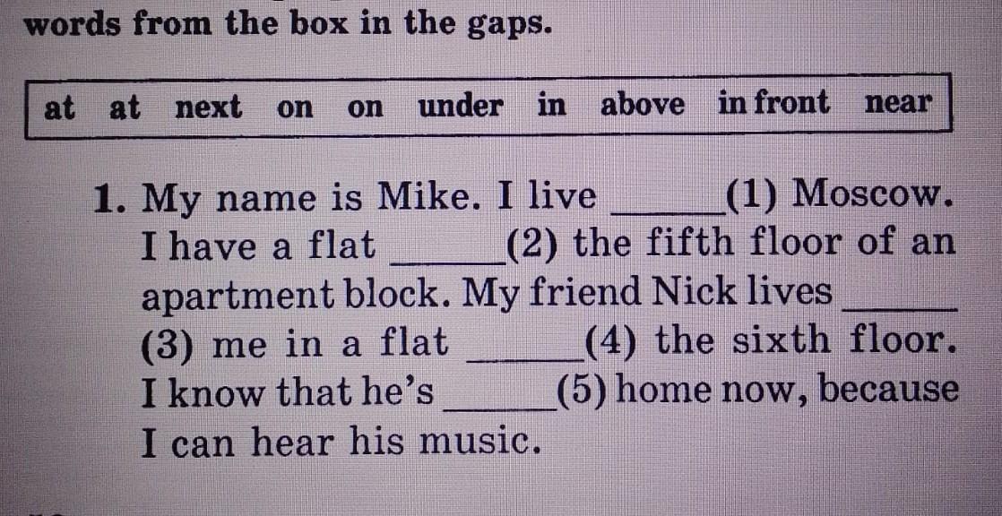 Ответ:1 in. 2 on. 3 above . 4 on. 5 at.