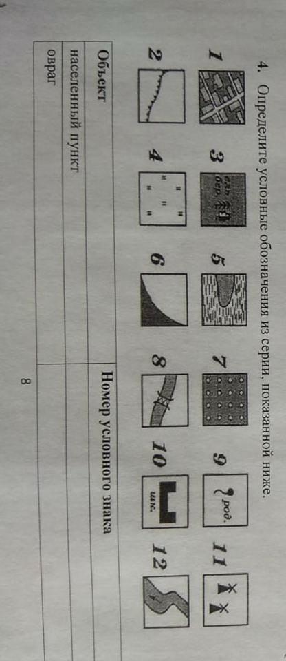 2. Определите условные обозначения из серии, показанной ниже. Объект: населённый пункт; овраг Номер условного знака: ПОМОГИТЕ ПРОШУ!