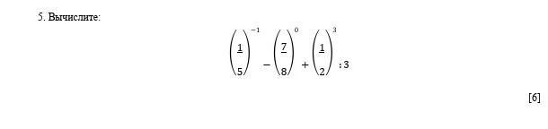 (1/5)⁻¹-(7/8)⁰+(1/2)³÷3=5-1 +1/8 ·1/3=4 +1/24=4 1/24