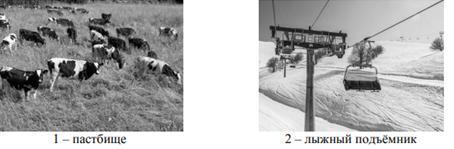 4. Какой из изображённых на фотографиях объектов может быть сооружён на территории, по которой проходит маршрут А – В? Запишите в ответе номер фотографии. Обоснуйте свой ответ. 1 – пастбище; 2 – лыжный подъёмник Ответ. Объект: _______ __________________________________________________________________