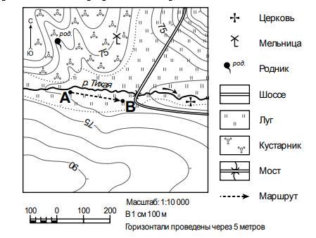 3. Какова протяжённость проложенного на карте маршрута А–В? Для выполнения задания используйте линейку. Расстояние измеряйте по центрам точек. Ответ. ___________________________