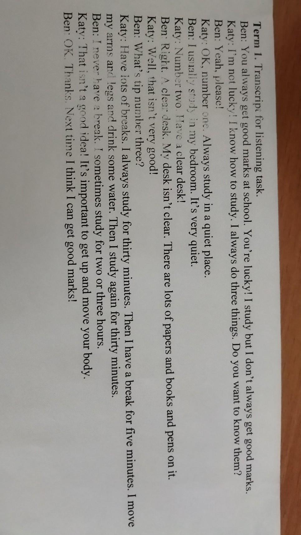 1. Ben... A) does not study B) studies and does well C) studies but does not do well D) does not go to school 2. Ben usually studies... A) in the library B) at home C) in his friend's house D) in the park 3. On Ben's desk there are... A) papers, books and pens B) pencils, books and pens C) a pencil case and pens D) copybooks and a laptop