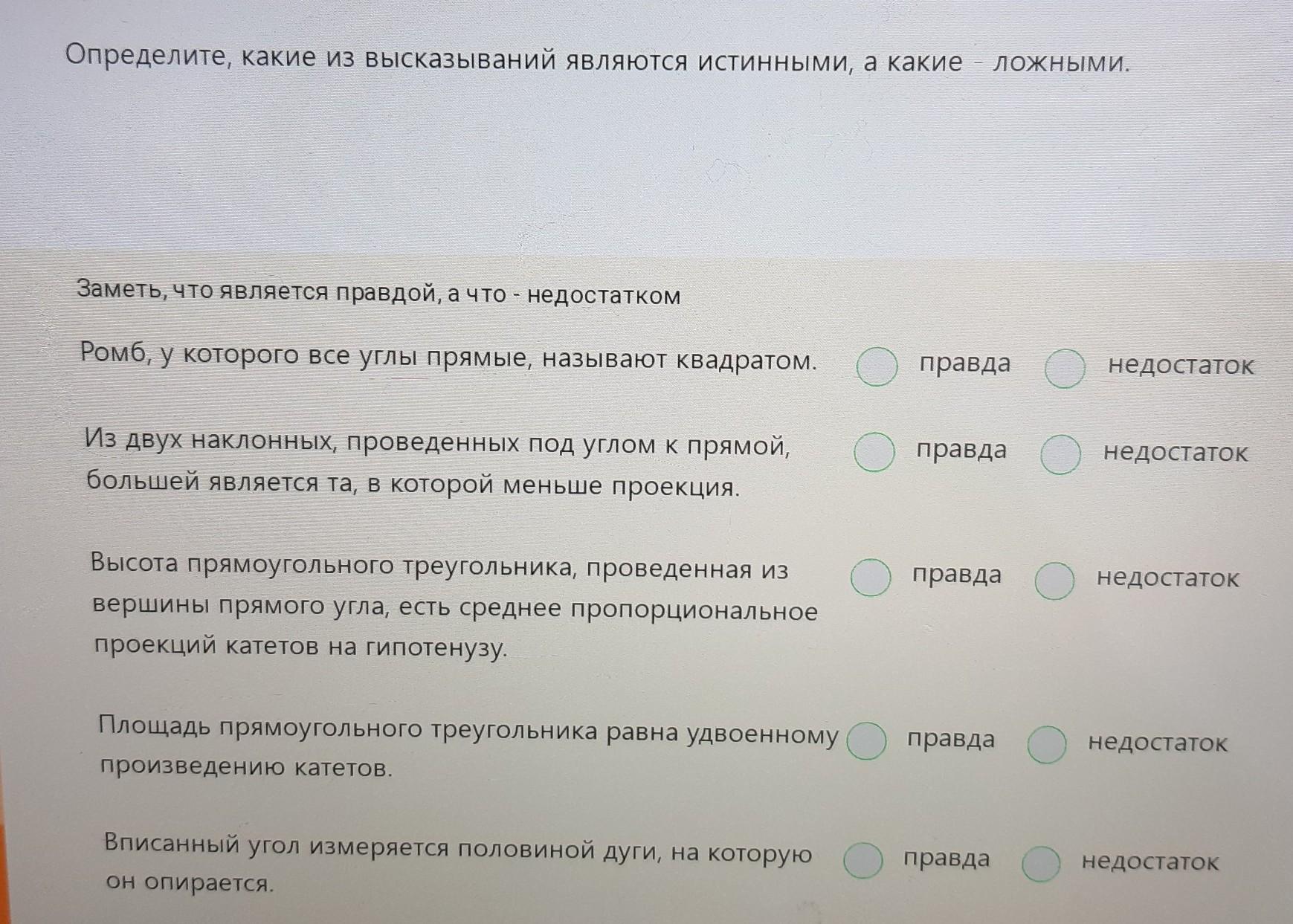- квадрат правда 2 недостаток 3 правда 4 правда недостаток