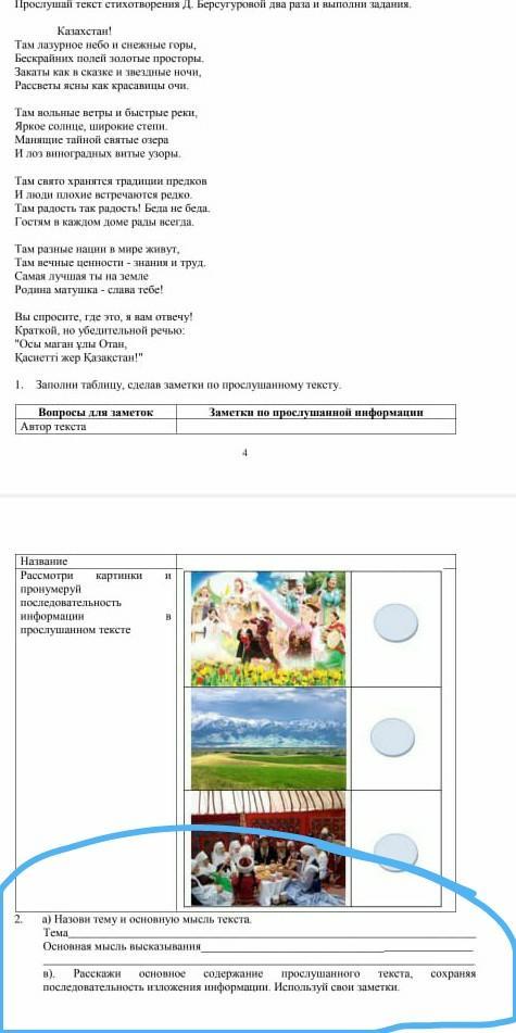 А) Тема:Мой родной аул