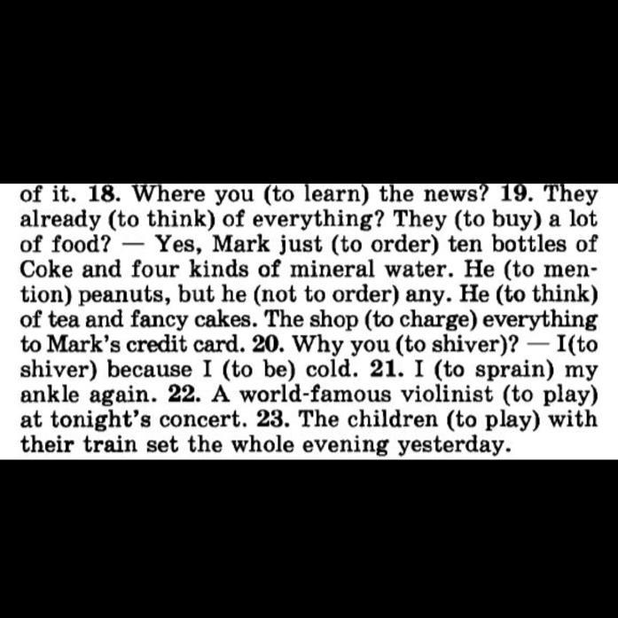 19 have they already thought, have they bought, Mark has just ordered, has mentioned, hasn't ordered,has thought,has charged