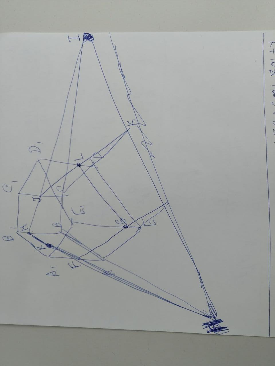 Находим точку пересечения прямых P и CD. Через это точку и точку J проводим прямую, которая пересекает сторону DD1 в точке L. Отрезок JL будет четвертой стороной сечения.