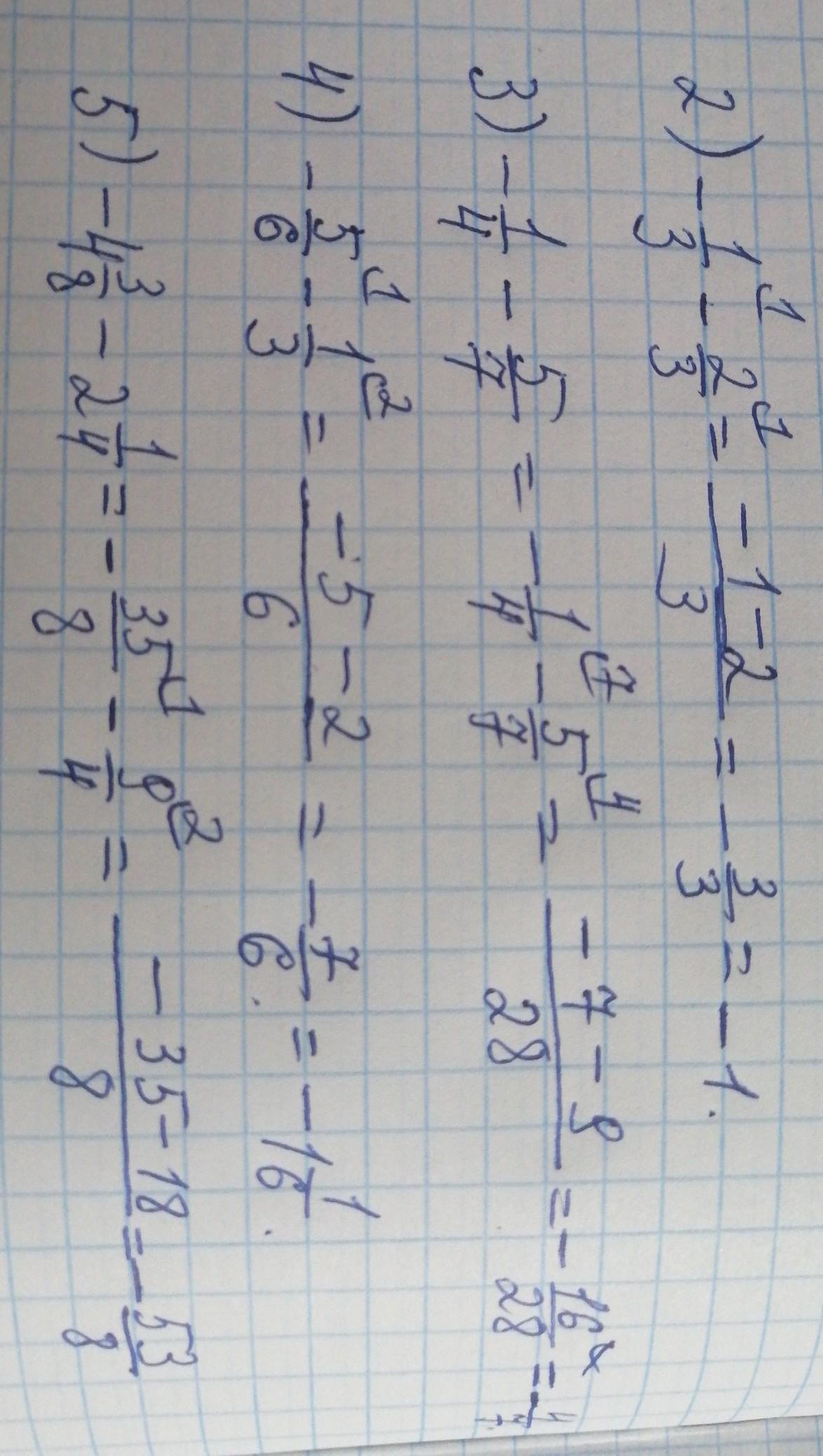 4) - 5/6 - 1/3 = - 5/6 - 2/6 = - 7/6 = - 1 1/6