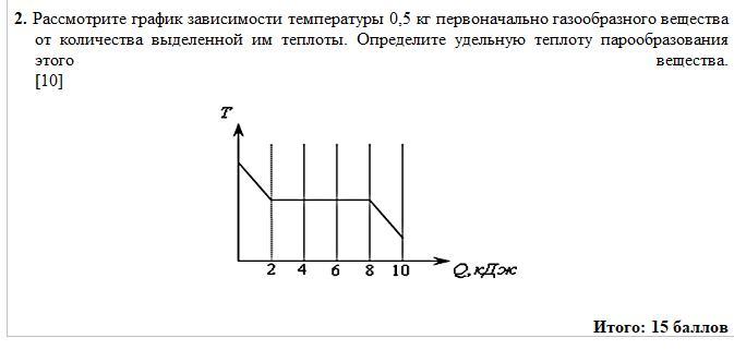 Рассмотрите график зависимости температуры 0,5 кг первоначально газообразного вещества от количества выделенной им теплоты. Определите удельную теплоту парообразования этого вещества