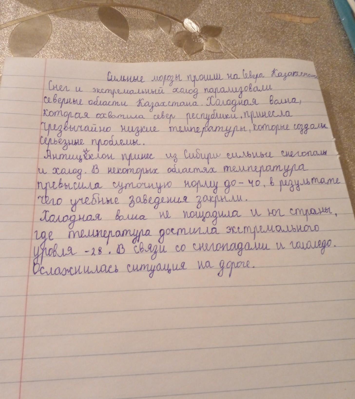 напишите заметку в школьную газету на тему сильные морозы прошли на севере Казахстана используя вводные слова и конструкция