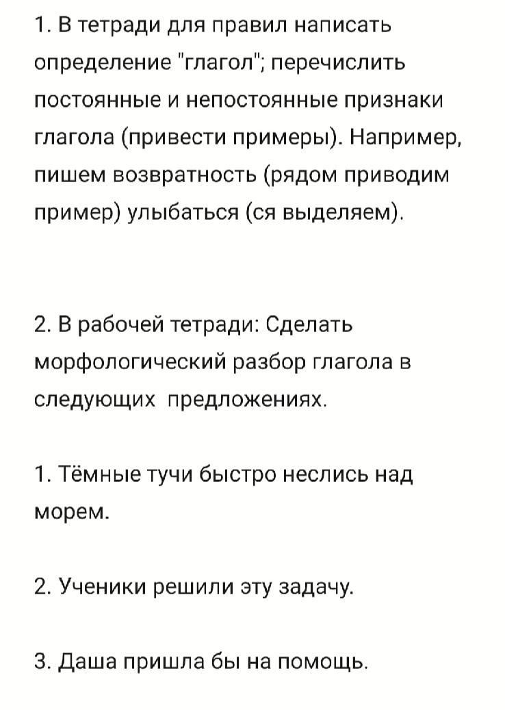 1)Глагол в русском языке — это это часть речи, которая обозначает действие или состояние предмета как процесс и отвечает на вопросы: что делать? что сделать?