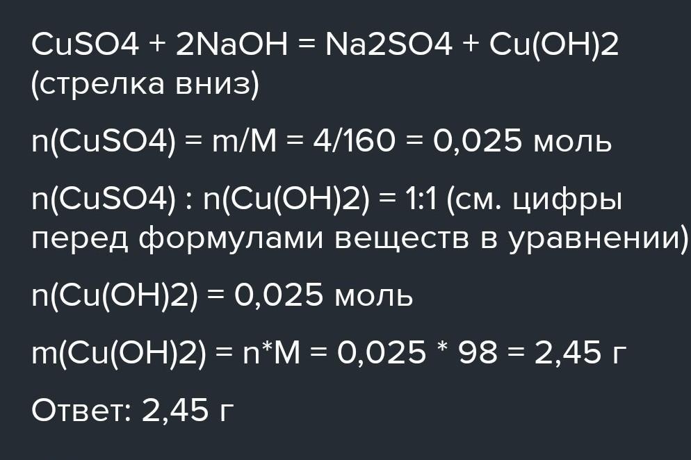 Найдите массу осадка, образовавшегося при добавлении 96 г сульфата меди (II) к раствору 32 г гидроксида натрия.