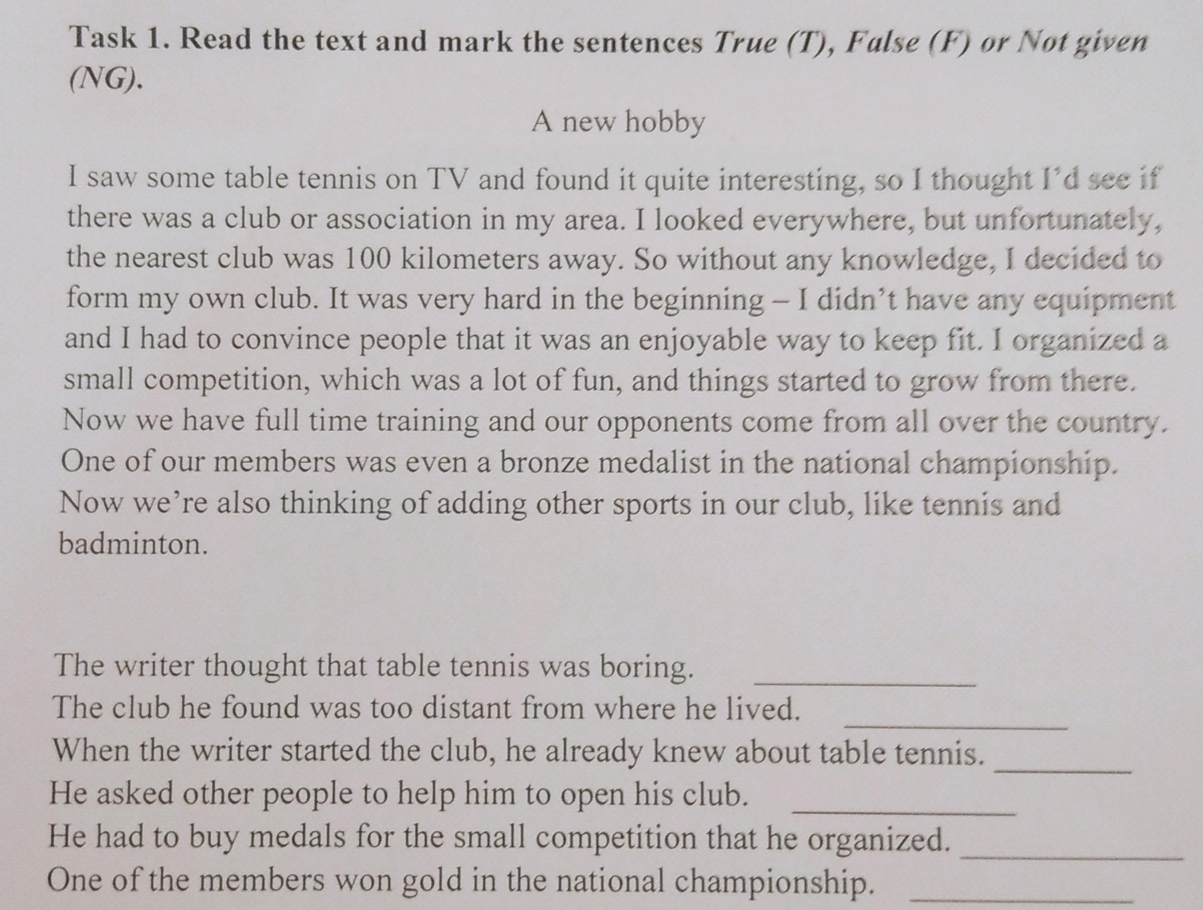 Задание 1. Прочитайте текст и отметьте предложения True (T), False (F) или Не указано