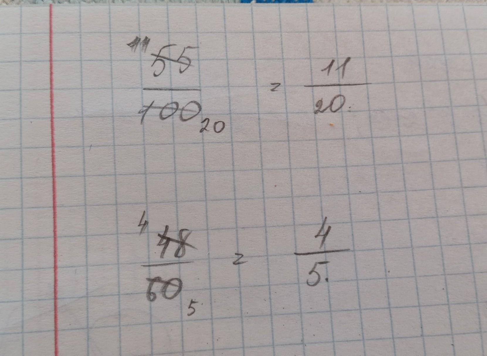 Сократите дробь запишите в виде несократимой дроби!! 55/100 48/60