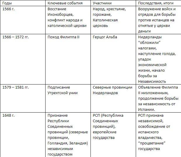 Систематизируйте в таблице материал об освободительном движении в нидерландах (1566-1609)