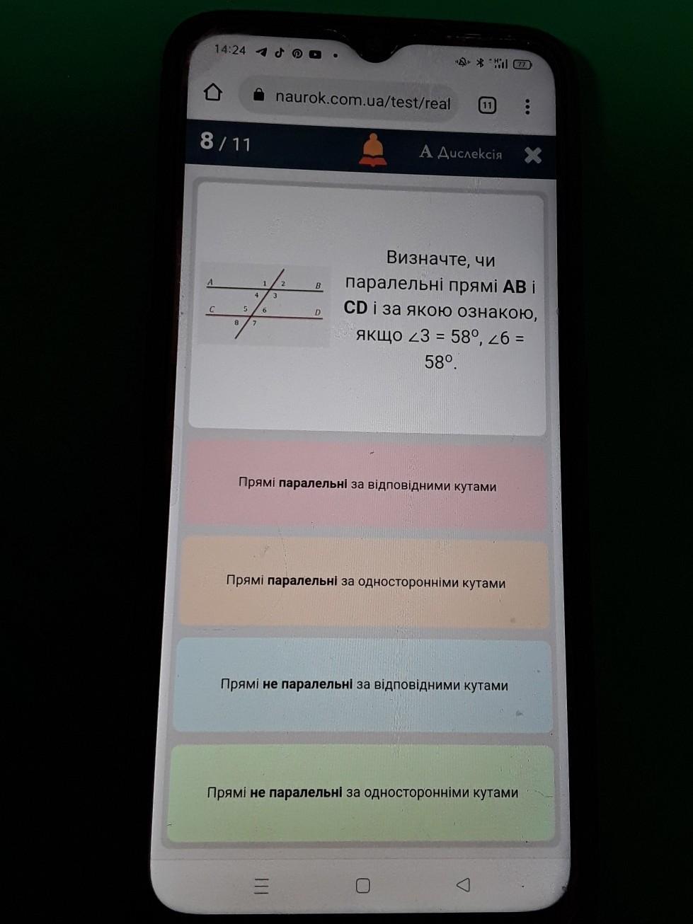 cиний ответ. ПРямые не паралельны т.к углы 3 и 6 односторонний, а их сумма не 180