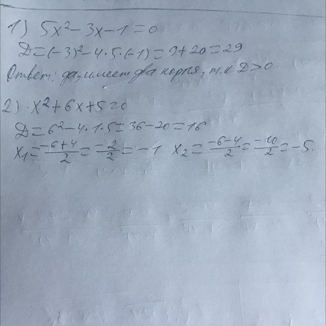 1) Определите, имеет ли квадратный трехчлен корни (если имеет то сколько) 5x²-3x-1