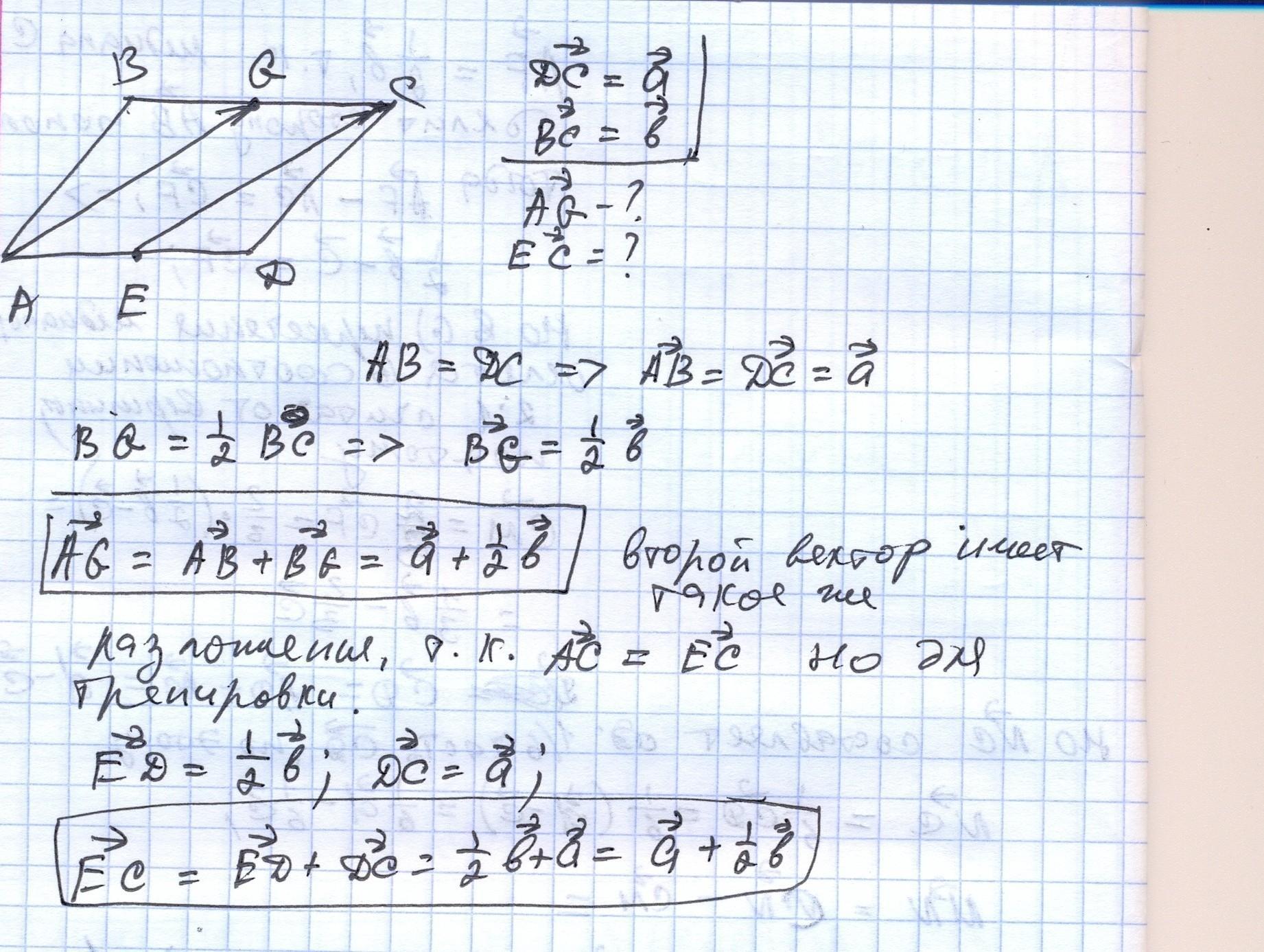 2. В параллелограмме АВСD, т.М середина стороны ВС. Выразите вектор АМ через векторы DC=a, CB=b.