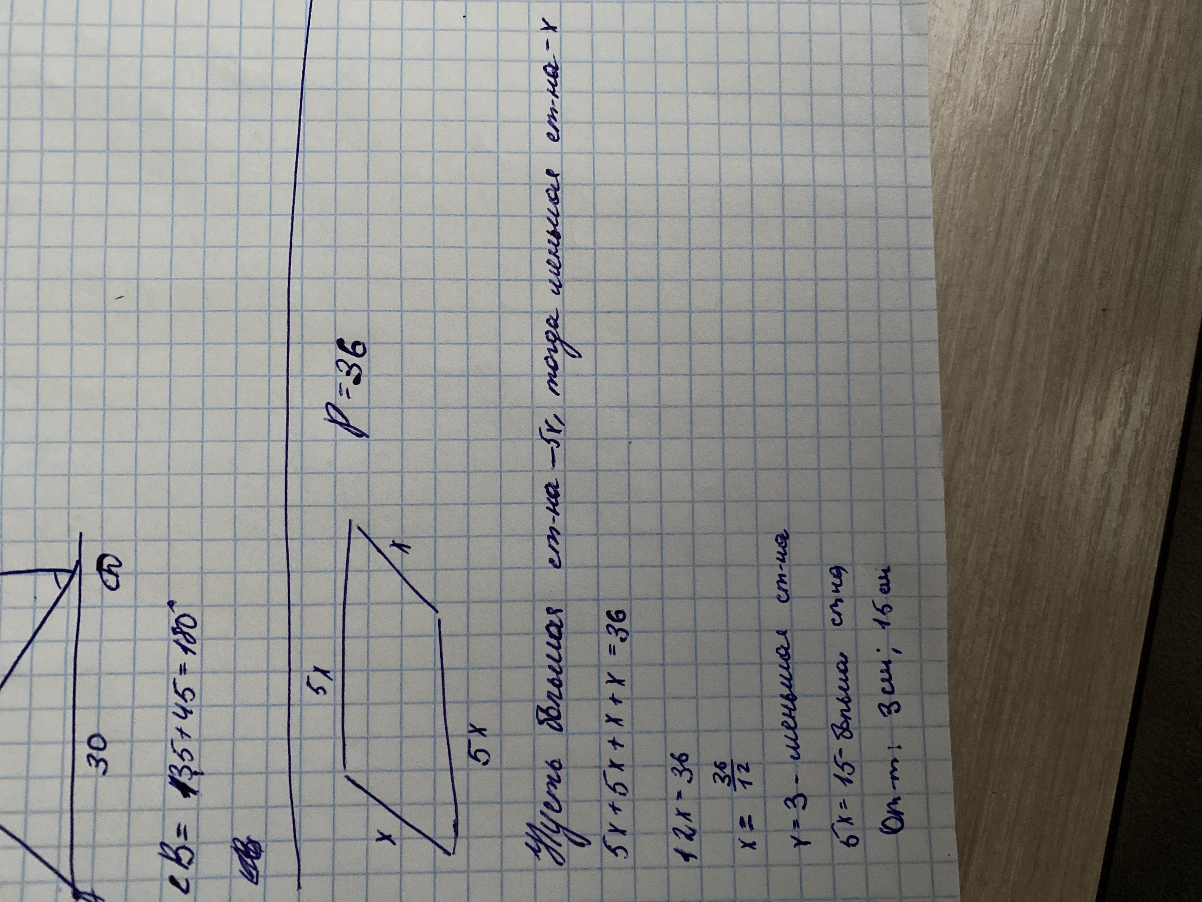 периметр параллелограмма равен 36см найдите стороны параллелограмма если две его стороны относятся как 1:5