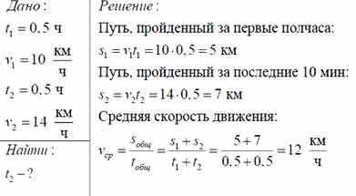 Спортсмен во время тренировки первые пол часа бежал 10 км/я а следующие пол часа со скоростью 14км/ч найдите среднюю скорость спортсмена