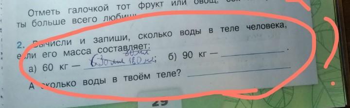Объяснение:чтобы найти количество воды в теле человека нужно еговес разделить на 3 и умножить на 2