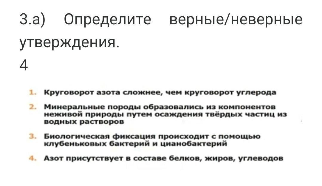 Ответ: Верное:1,2.Неверное:3,4.
