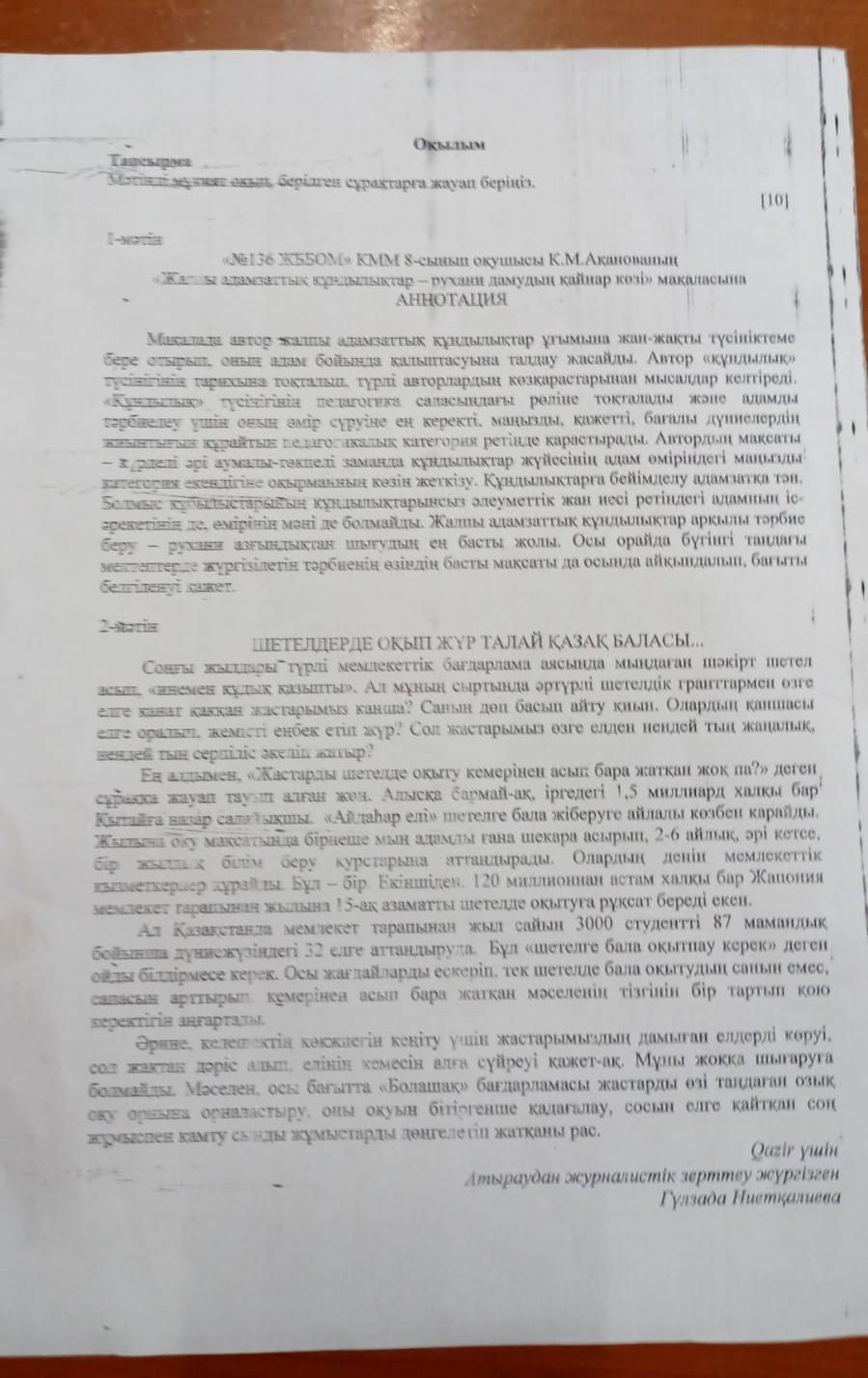 1-мәтін 2-му и Тақырыбы Жанры, жанрлық ерекшеліктері неде? Құрылымы қандай мәтін болімдерінен тұрады? Мәтіндер қалай ресімделген? Төменде берілген мәтінді оқып, оның мазмұны мен көтерілген басты мәселесін, мәтіннің толык нускасын оқу мақсатты аудитория эң кызығушылығын тудыратындай ғылыми- ақпараттык С1: , љде аннотация жазыңыз. Аннотация жазуда келесі клишелерді қолданыңыз: мақајаос қарастырылады, мақала қарастырылады, мақала ... арналған, мақалада корсетіледі, мақалатын негізінде ... жатыр. актор ... мәселелерге тоқталады, автор ... мәселелерін қозғайды, автордың мақаланың мақсаты... 15 балл берем пж срочно керек