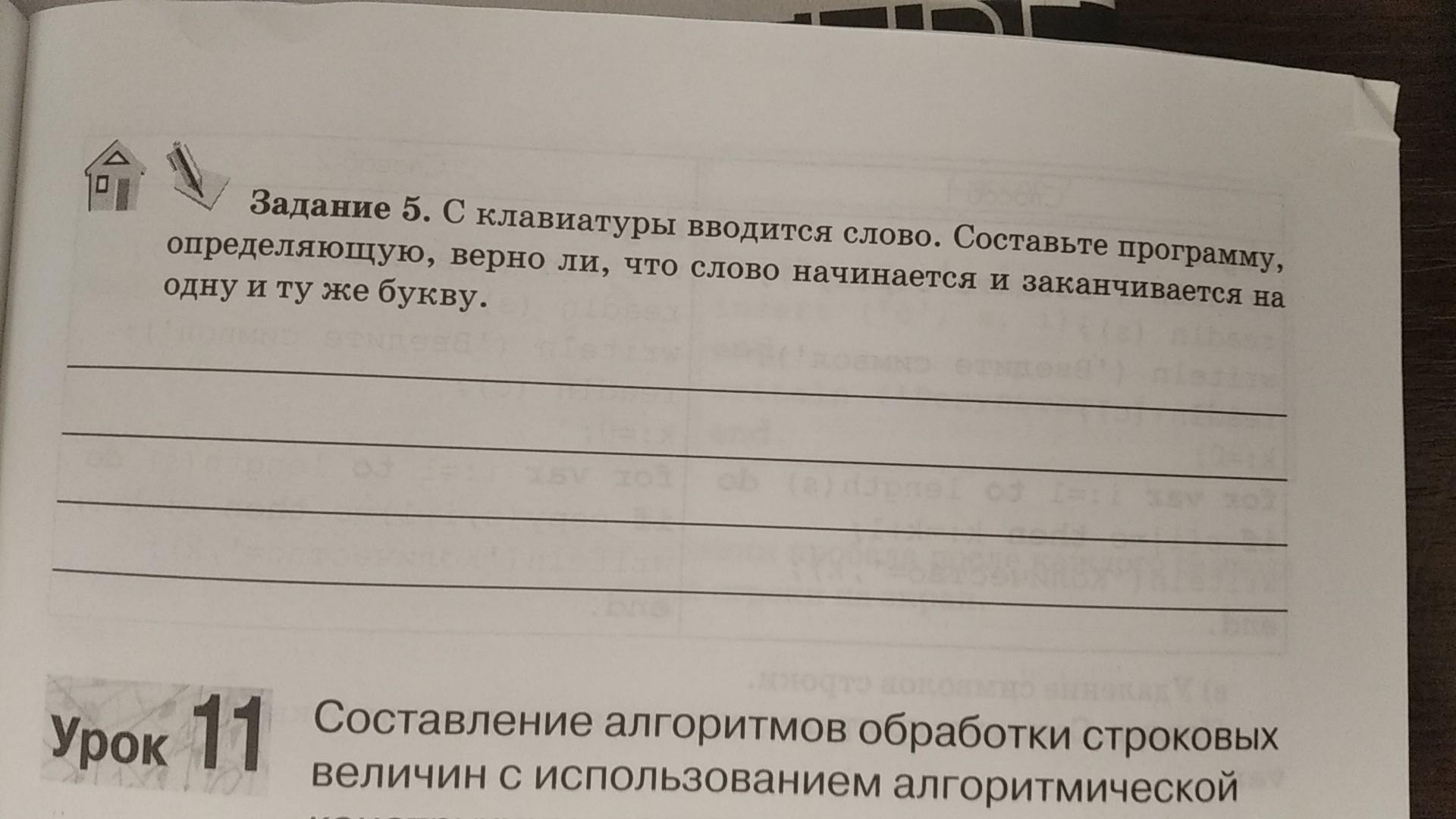 с клавиатуры вводится слово. составьте программу, определяющую, верно ли, что слово начинается и заканчивается на одну и ту же букву.