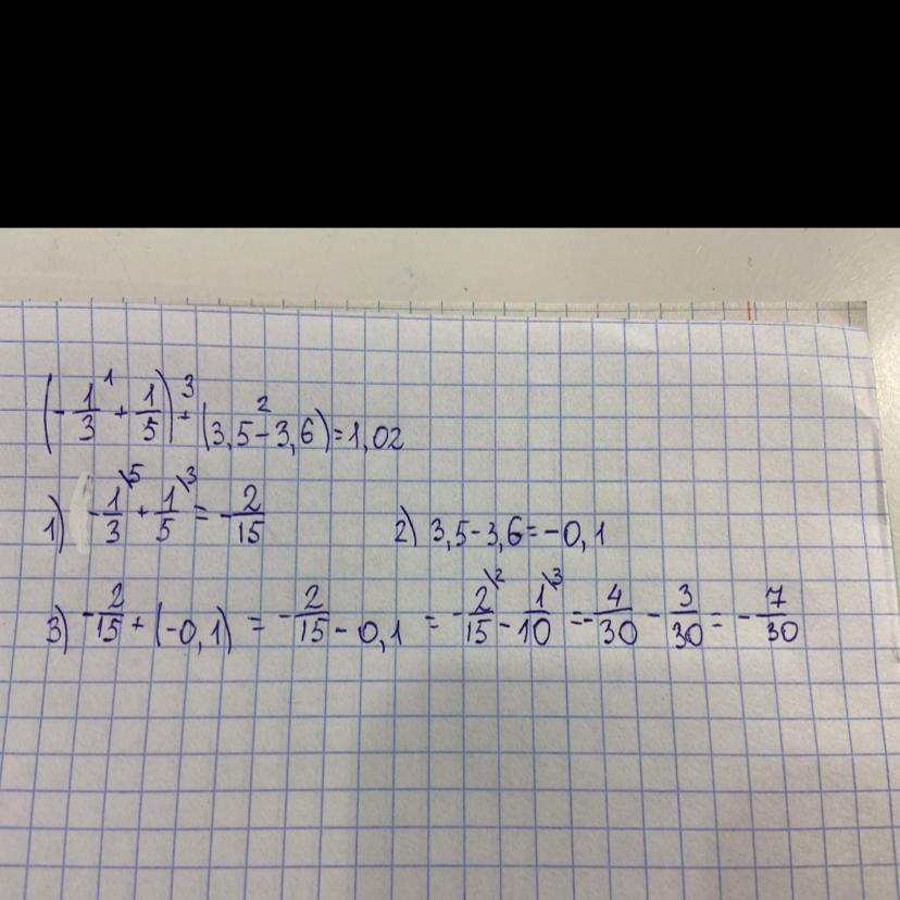 1) -1/3 + 1/5 = -5/15 + 3/15 = -2/15