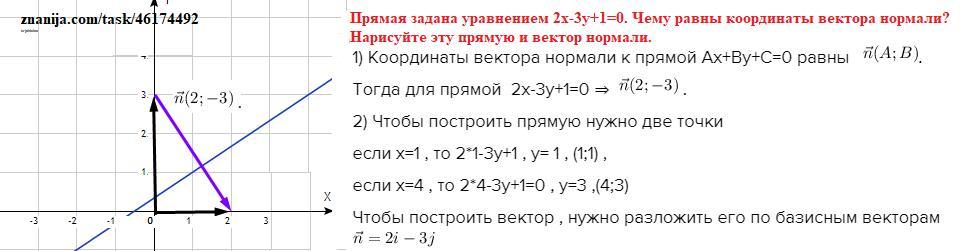 Прямая задана уравнением 2x-3y+1=0. Чему равны координаты вектора нормали? Нарисуйте эту прямую и вектор нормали.