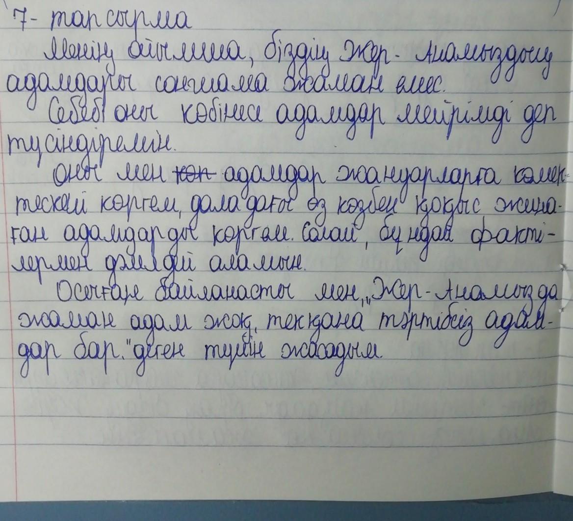 Үшiншi сөйлем. Оны мен деген фактілермен, мысалдармен дәлелдей аламын.