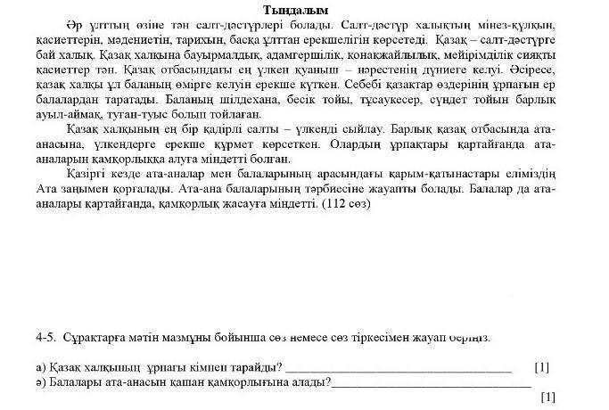 4-5. сұрақтарға мәтін мазмұны бойынша сөз немесе сөз тіркесімен жауап беріңіз. a) қазақ халқының ұрпағы кімнен тарайды? ә) балалары ата-анасын қашан қамқорлығына алады?