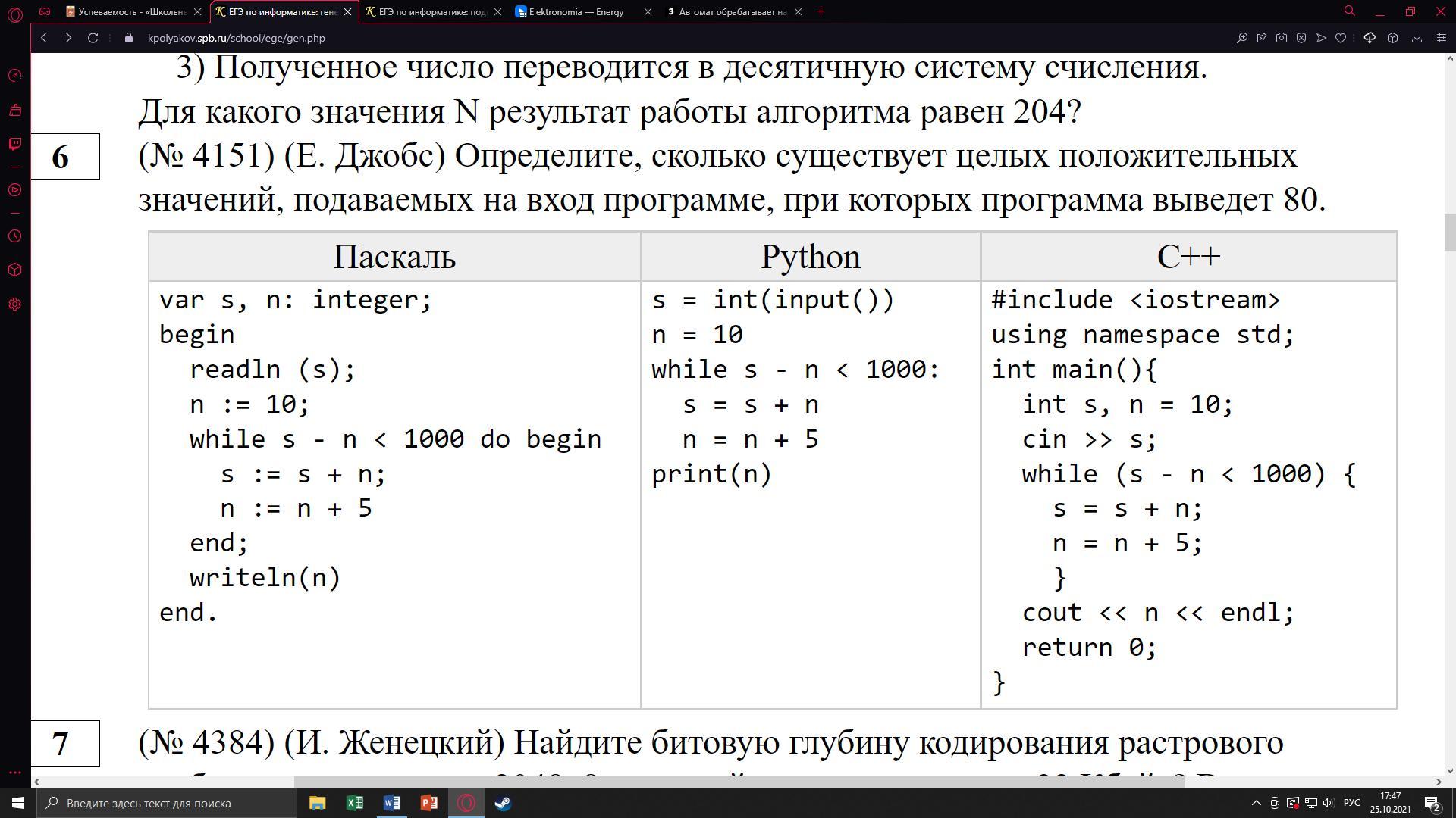 (Е. Джобс) Определите, сколько существует целых положительных значений, подаваемых на вход программе, при которых программа выведет 80.