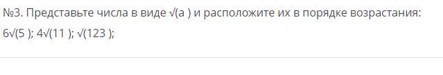 Объяснение: так, ну я не смогла представить в виде √(а), поэтому просто написала в порядке возрастания. Сорри
