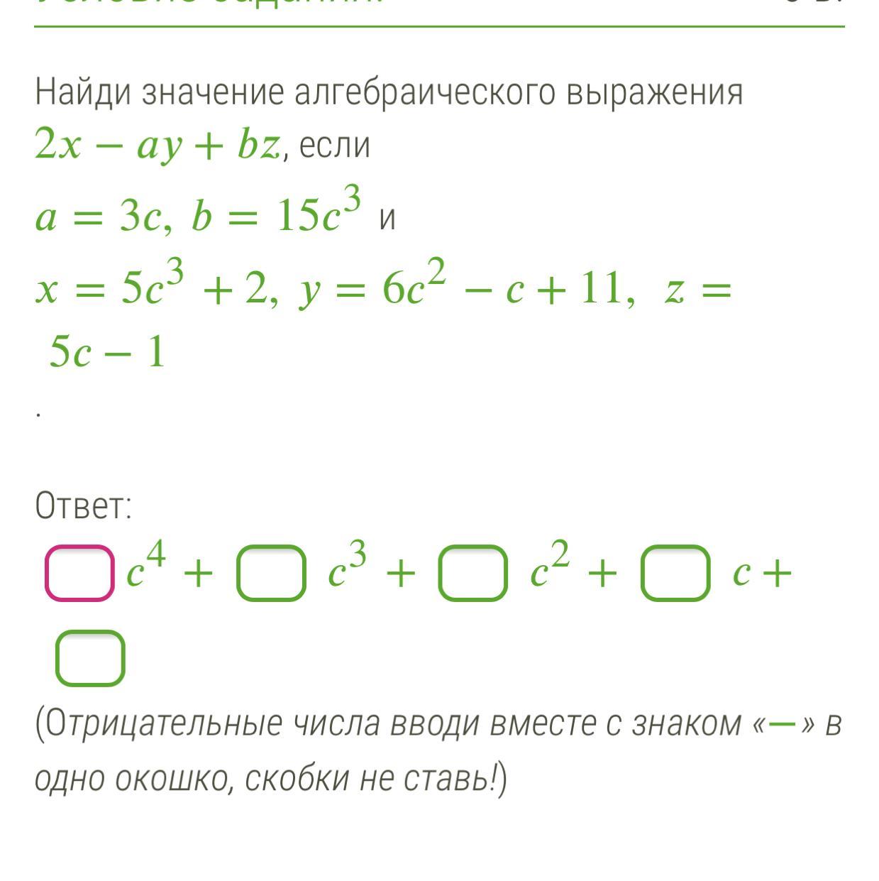 2(5с³+2)-3с(6с²-с+11)+15с³(5с-1)=10с³+4-18с³+3с²-33с+75с⁴-15с³=75с⁴+(-23)с³+3с²+(-33)с+4