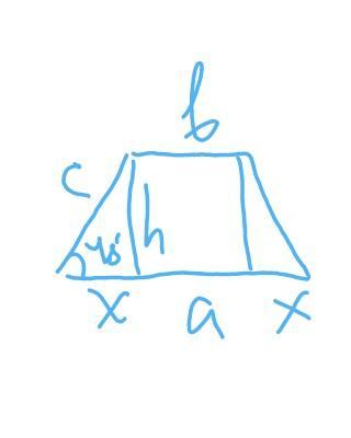 Х=h=4 дм, т. к <45 градусов, значит тр-к равнобедренный