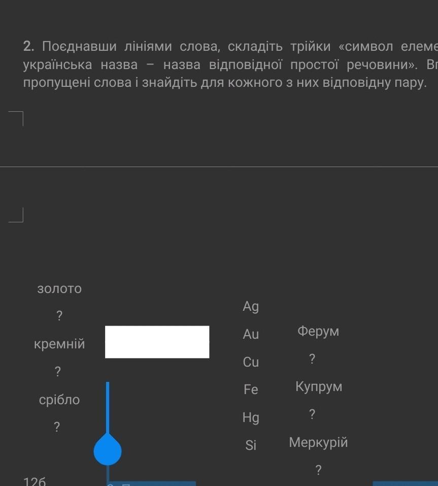 Відповідь:Золото - Аu,кремній - Si,срібло - Ag.Ферум - Fe,Купрум - Cu,Меркурій - Hg.