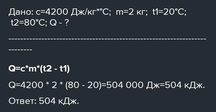 Q=4200Дж/кг*°C*30°C*2 кг=252000Дж или же 252 кДж