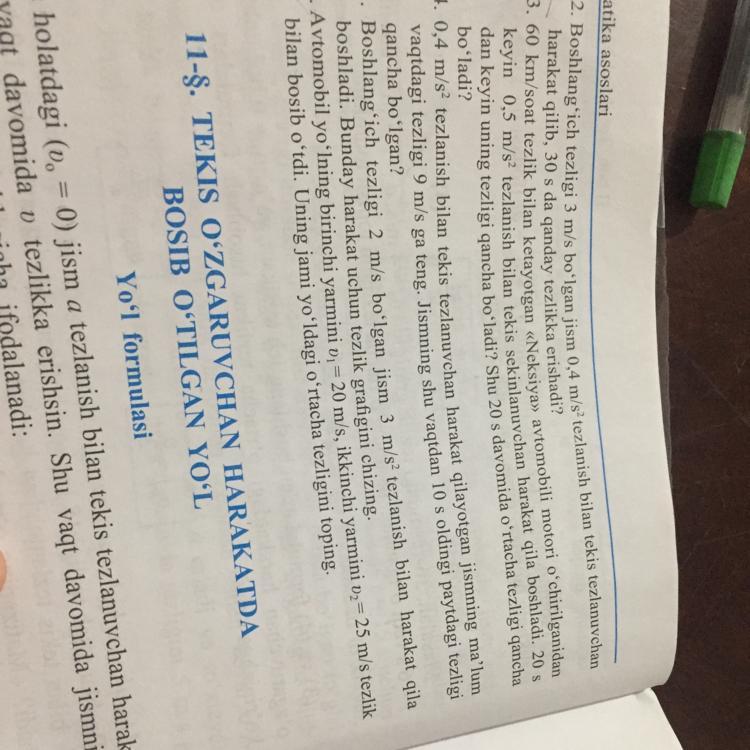 6. Avtomobil yoʻlning birinchi yarmini v. = 20 m/s, ikkinchi yarmini v2 = 25 m/s tezlik