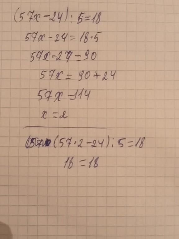 (57*2 - 24) : 5 = (114 - 24) : 5 = 18