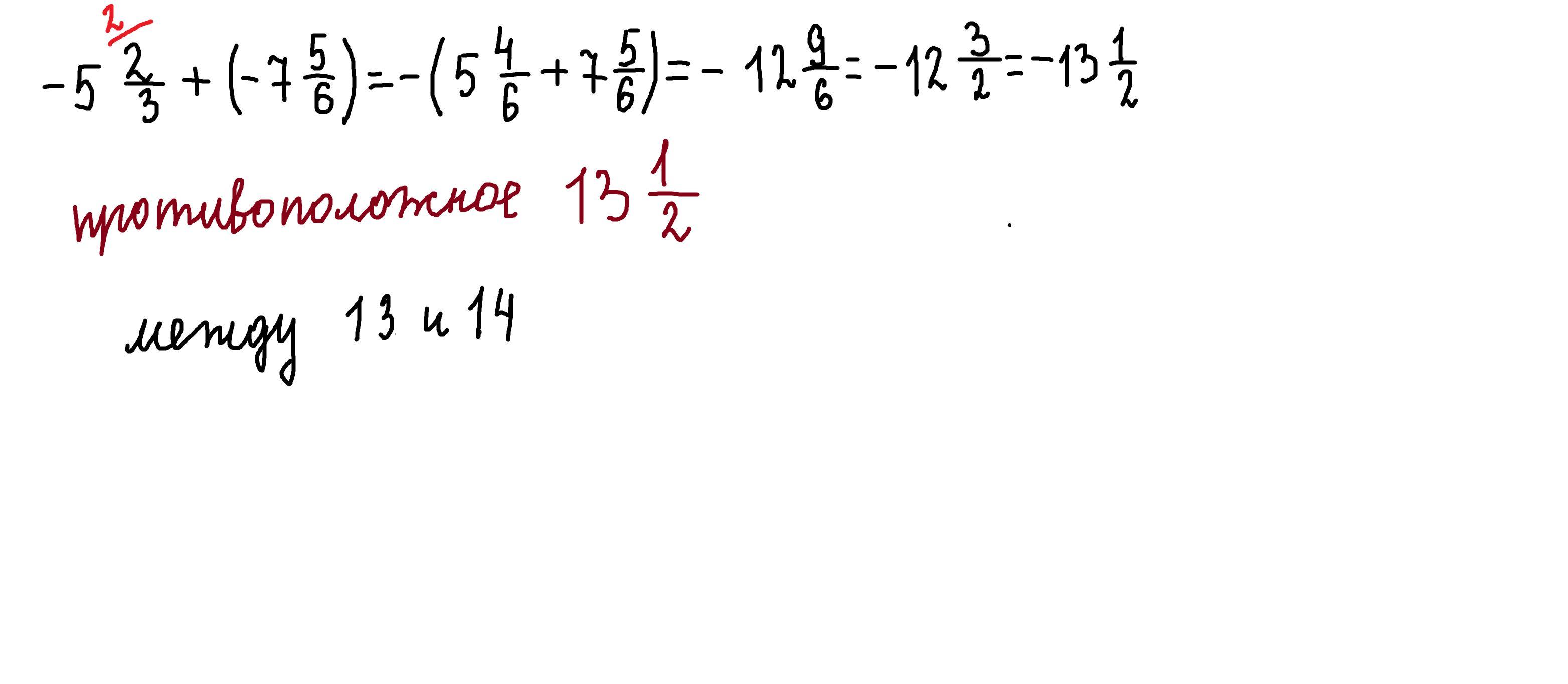 между какими двумя целыми числами находится число противоположное сумме чисел -5⅔ и -7⅚