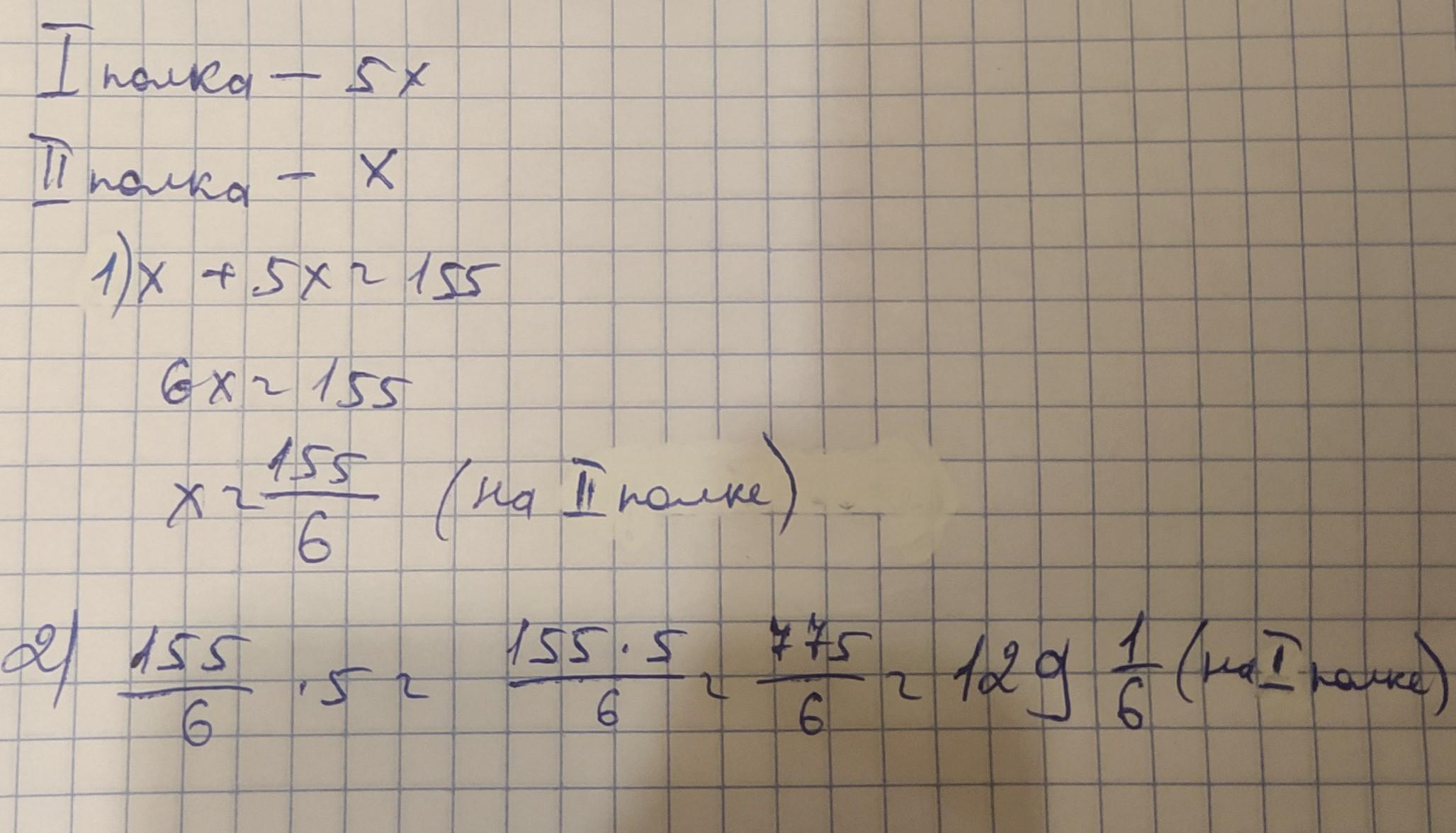 2) 155/6×5=129 1/6 (на 1 полке)
