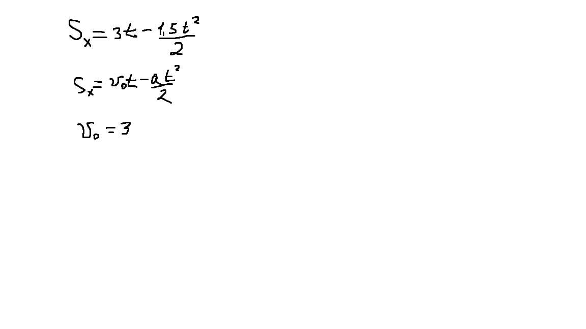 Залежність проекції швидкість руху тіла від часу задано рівнянням Sx=3t-1,5t2 Визначте проекцію початкову швидкість руху тіла?