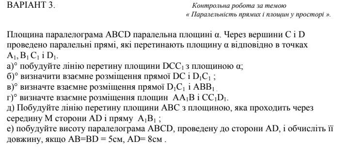 е) побудуйте висоту паралелограма АВСD, проведену до сторони AD, і обчисліть її довжину, якщо АВ=BD = 5cм, AD= 8см .