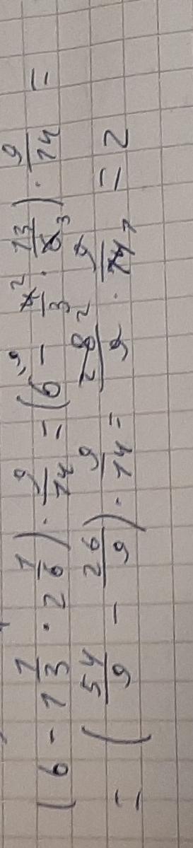 ( 6 - 1 1/3 * 2 1/6 ) * 9/14 = ( 6 - 2 8/9 ) * 9/14 = 3 6/7 - 1 6/7 = 2