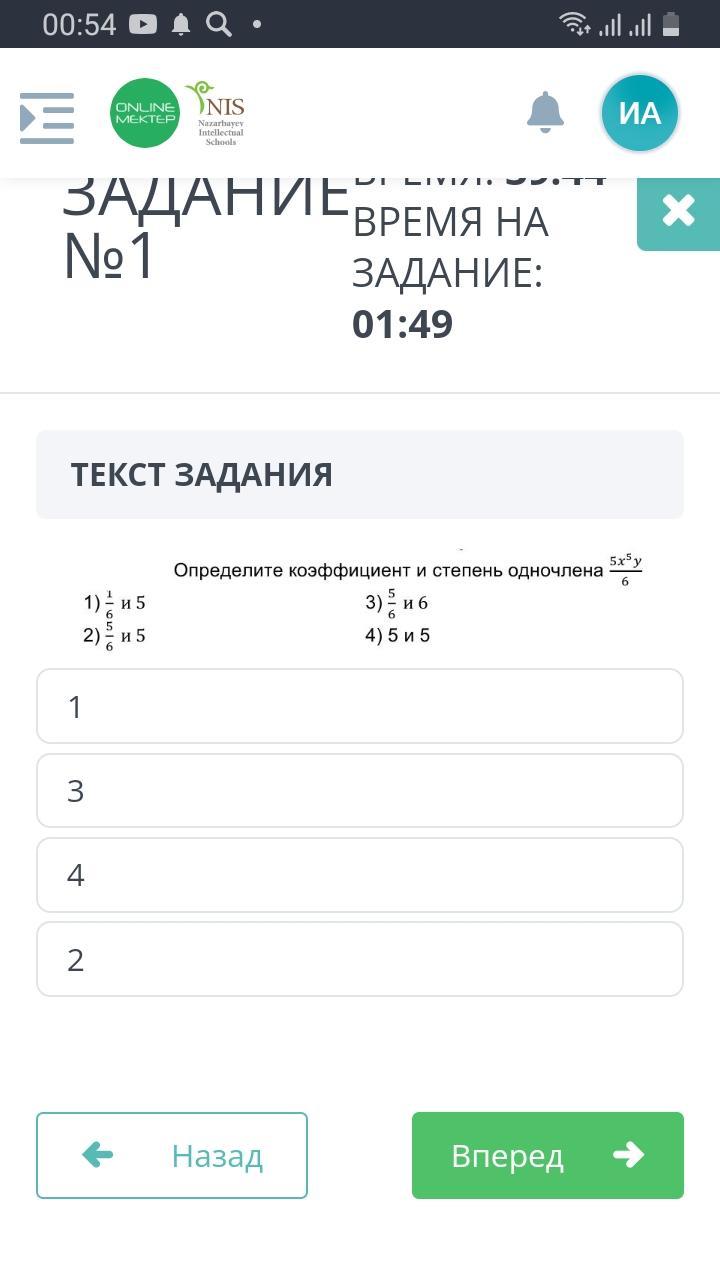 Определите коэффициент и степень одночлена 5x⁵y/6