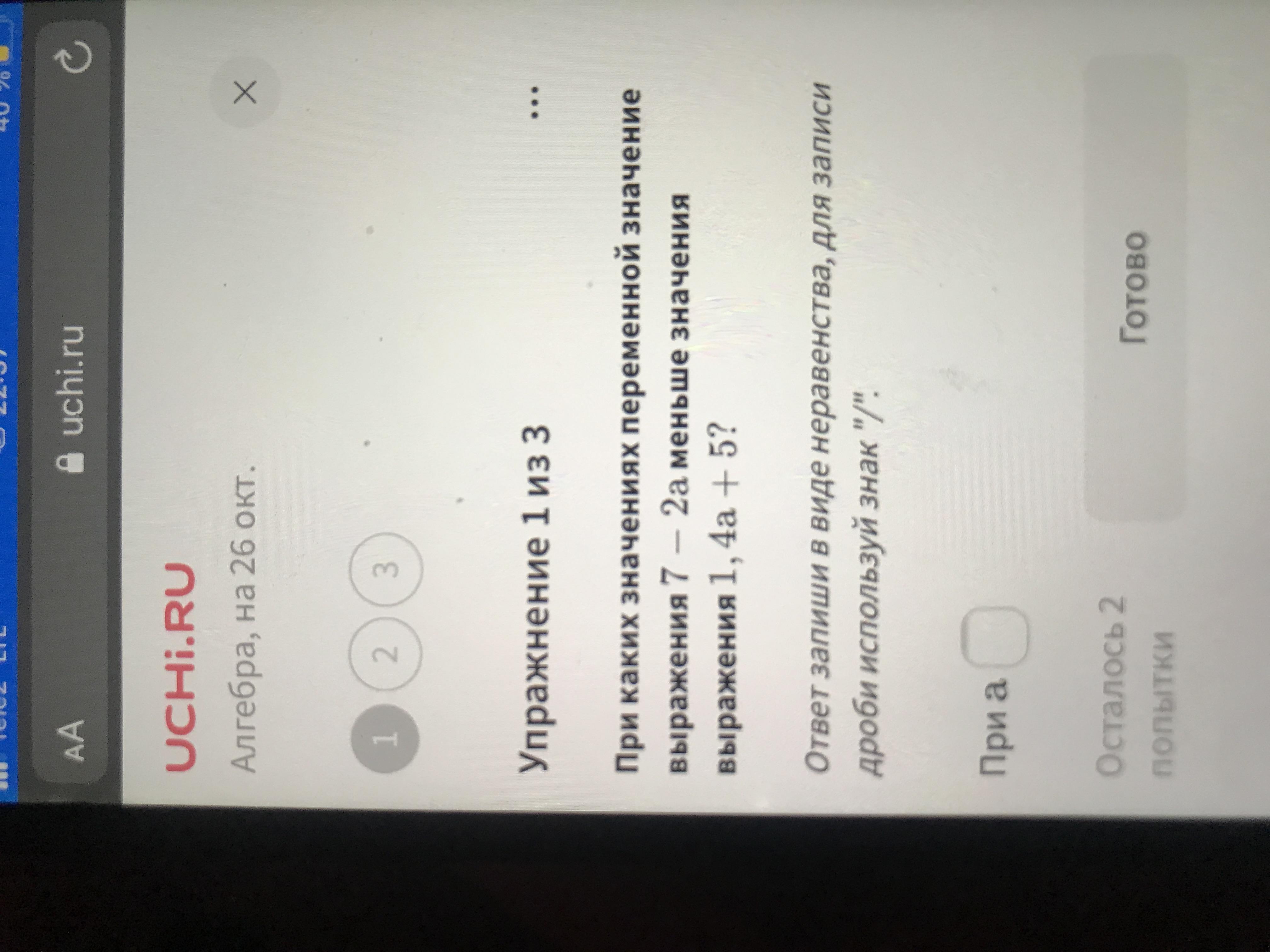 При каких значениях переменной значение выражения 7-2a меньше значения выражения 1,4a+5 ,