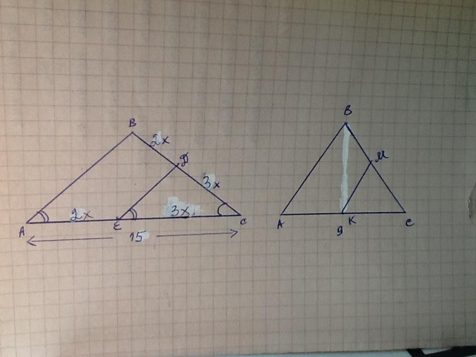 Дано: ΔАВС, АС=15 см, DЕ║АВ, BD:DC = 2:3. Найти АЕ и ЕС.