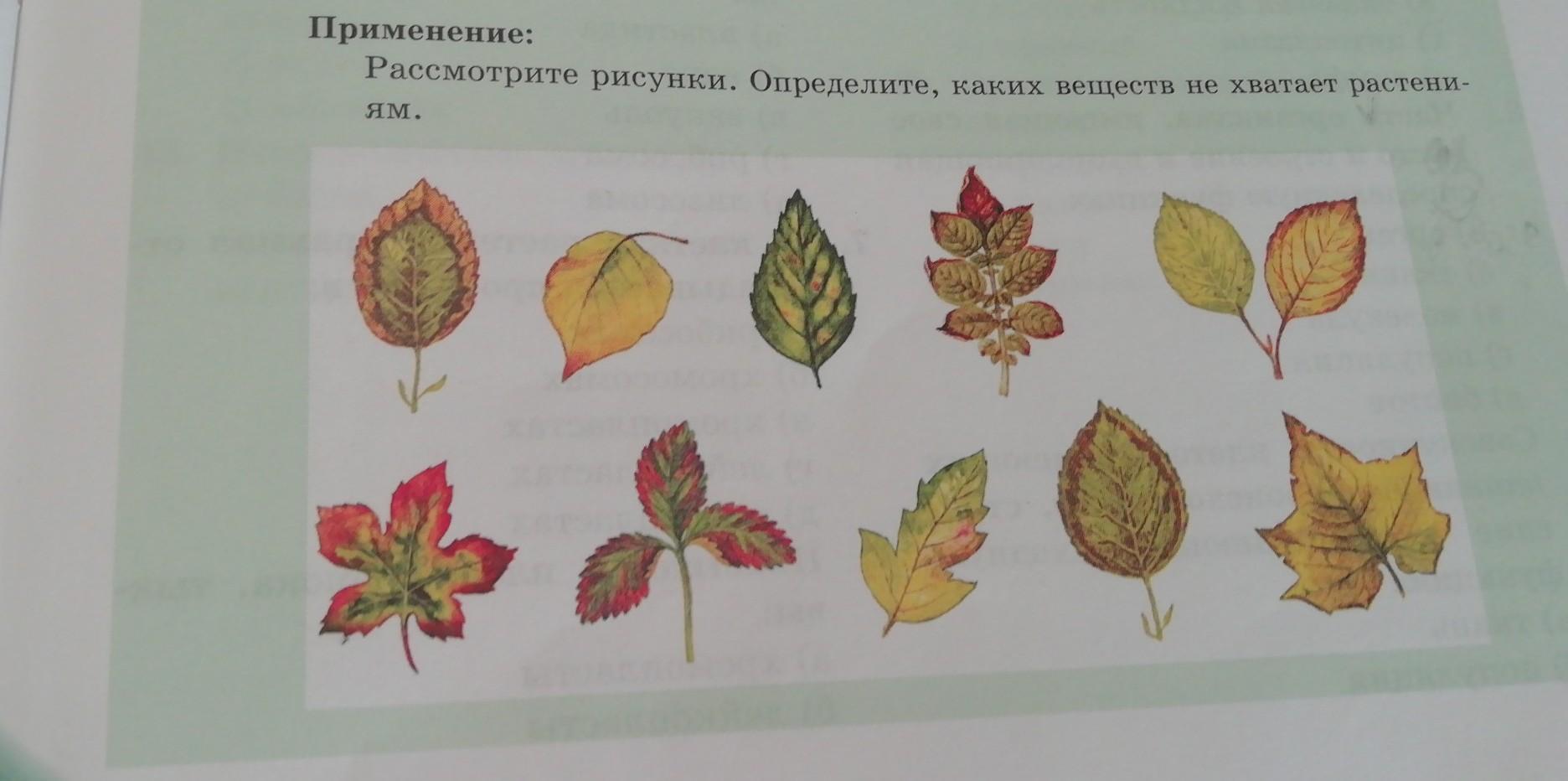 На рисунке изображены растения с нехваткой азота, калия, магния, фосфора, железа.