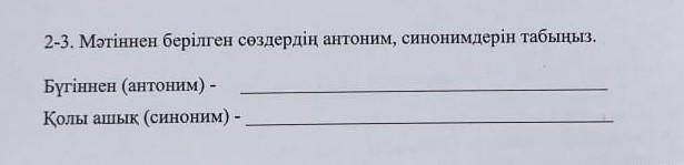 "Қолы ашық" сөзунің синонимдері: жомарт, береген, даркқан, мырза, шүлен, шығымды.