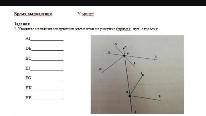 укажите название следующих элементов на рисунке (прямая,луч,отрезок)